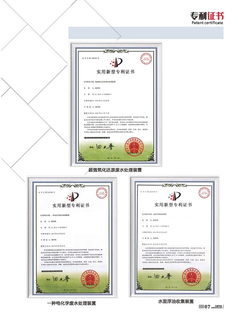 以治理廢水為主,獨(dú)立研制開發(fā)多種節(jié)能環(huán)保產(chǎn)品,已獲多項(xiàng)國家發(fā)明及新型專利水面浮油收集裝置 ZL 2013 2 0211856.4。公司堅(jiān)持“以質(zhì)量求生存、以信譽(yù)求發(fā)展、以市場為導(dǎo)向、以技術(shù)為依托”的宗旨,產(chǎn)品在國內(nèi)以“技術(shù)新、性能好、價(jià)格廉”著稱。